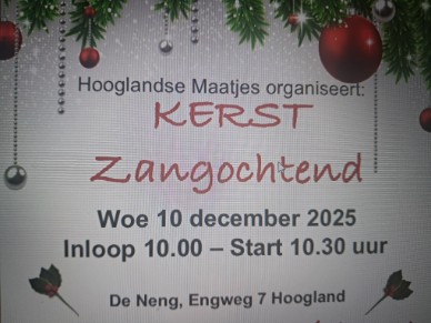 De Hooglandse maatjes organiseren een gezellige kerst zangochtend. Onder leiding van Ben en begeleid...